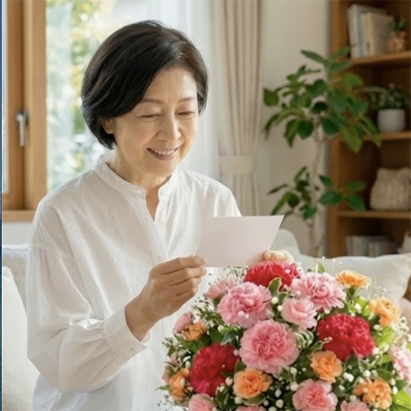 お花がそのまま手渡しで届くことで、相手に“気持ち”をより直接的に伝えやすいというメリットがあります。 母の日のような“感謝を伝える日”には特に喜ばれやすく、 「形式ばった贈り物っぽさ」の抵抗感を和らげることもできます。